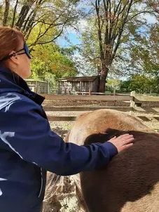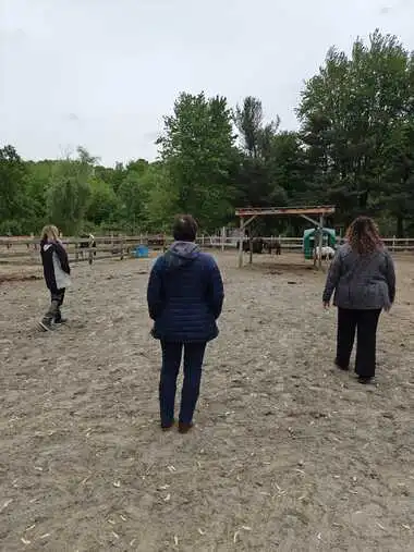 Les ateliers offrent un temps de pause en groupe, au cœur de la nature et en lien avec les chevaux.